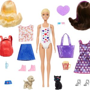 Barbie Color Reveal Doll Set with 25 Surprises Including 2 Pets & Day-to-Night Transformation: 15 Mystery Bags Contain Doll Clothes & Accessories for 2 Looks; Water Reveals Look of Metallic Doll