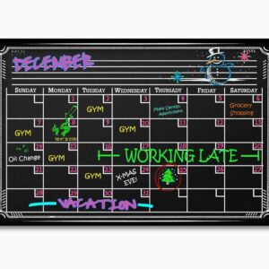 Magnetic Refrigerator Calendar Dry Erase Black Chalkboard Board Design | Monthly for Kitchen Fridge| Use w/ Wet Wipe Fluorescent or Neon Markers ?
