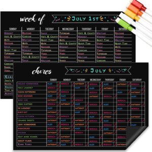 Chore Chart & Magnetic Calendar for Refrigerator – Dry Erase Chore Board for Multiple Kids – Chores Board for Fridge – 17X12? – 4 Chalk Markers – Family Refrigerator Weekly Planner