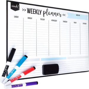 Magnetic Dry Erase Weekly Calendar for Fridge: with Stain Resistant Technology – 17×12″ – 4 Fine Tip Markers and Large Eraser with Magnets – Whiteboard Organizer Planner: Refrigerator White Board