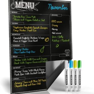 Magnetic Menu Board for Kitchen Fridge with Bright Chalk Markers – 17X12″ – Dry Erase Weekly Meal Planner and Grocery List Notepad for Refrigerator – Perfect Chalkboard Magnet Pad