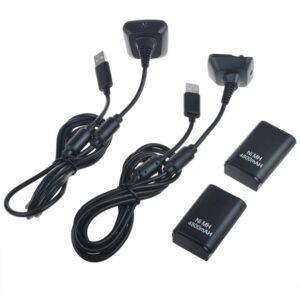 LoveCam 4800mAh Battery Pack + Charger Cable for Microsoft Xbox 360 Wireless Controller (2-Pack)