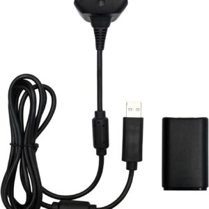 OSTENT 2 in 1 Charger Cable + Rechargeable Battery Pack Compatible for Xbox 360 Wireless Controller Color Black