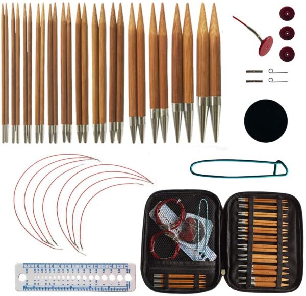 Bamboo Circular Knitting Needles Set with 13 Sizes,Interchangeable Circular Knitting Needles with Storage Case for Any Crochet Patterns & Yarns Projects