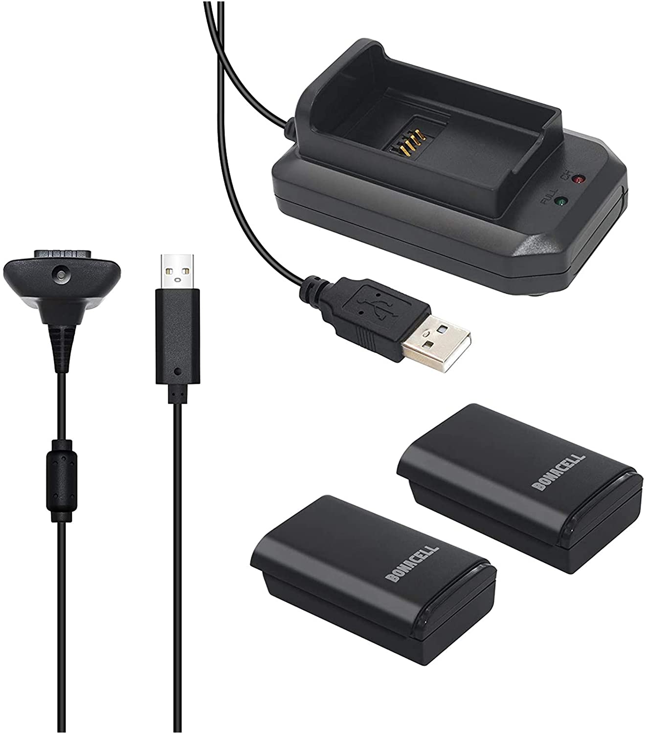 Bonacell Xbox 360 Rechargeable Battery Packs, 2 x 2200mAh Replacement Batteries and Charging Dock with 3 Meters Cable Kit, Compatible with Xbox 360 Controllers