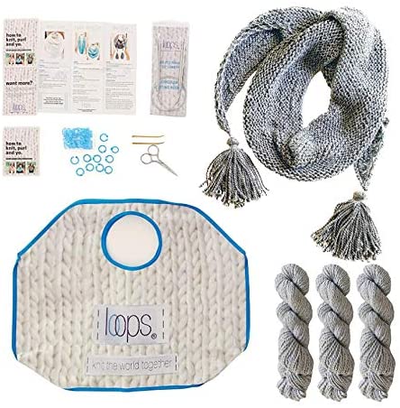 Knitting Starter Kit for Beginners | Includes 3 Patterns with Video Tutorials | Loops Luxe Chunky Royal Alpaca Yarn | Learn to Knit Kit | Light Gray