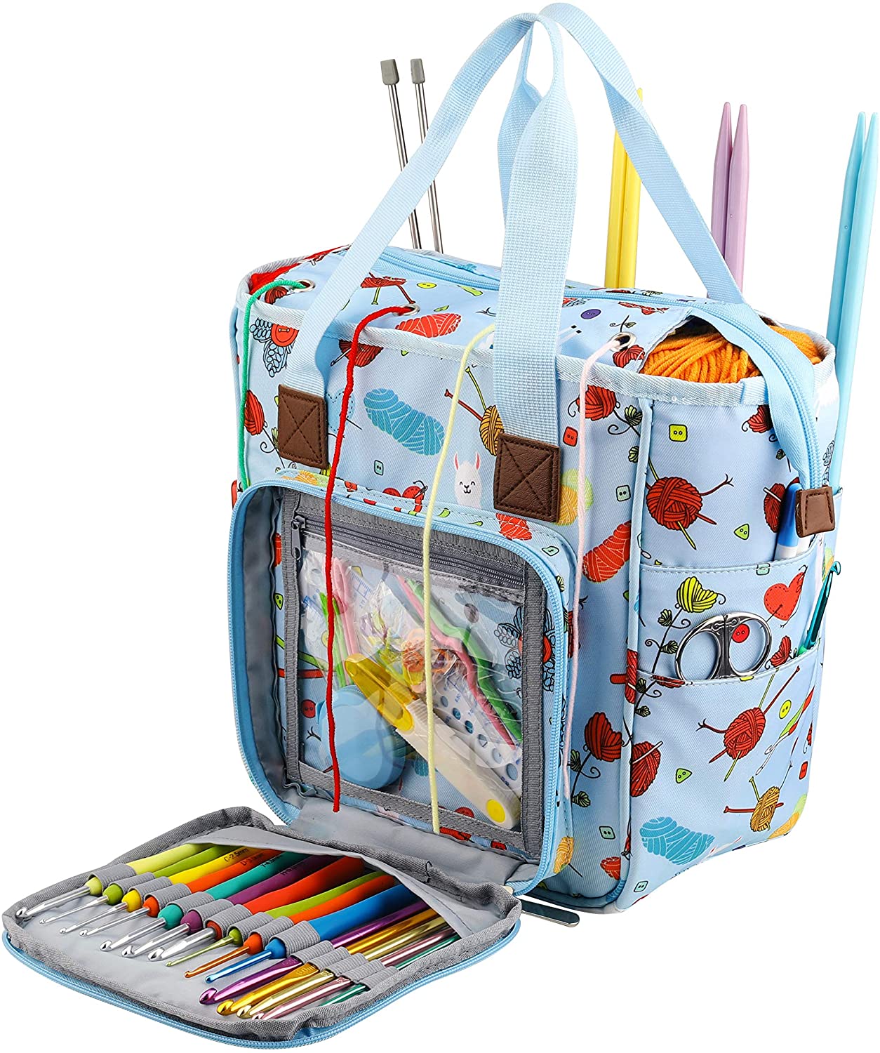 KOKNIT Knitting Tote Bag, Lightweight Knitting Yarn Storage Bag for Carrying Project with Pockets for Crochet Hooks, Knitting Needles and Accessory, Stylishly Designed Can be Matched with Any Outfit