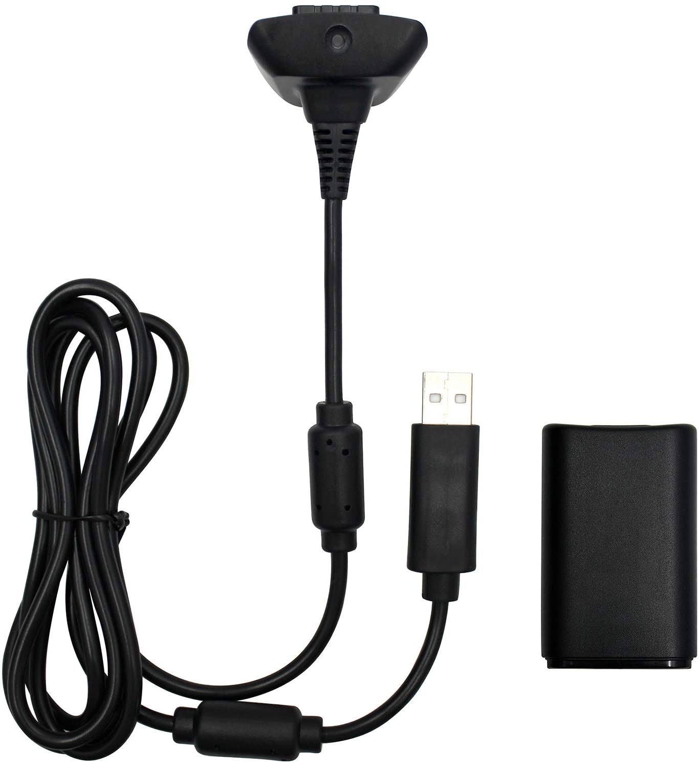 OSTENT 2 in 1 Charger Cable + Rechargeable Battery Pack Compatible for Xbox 360 Wireless Controller Color Black