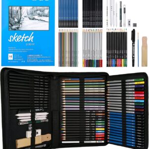 • 【Extra Drawing Sketching Supplies Kit 】: Along with 1 Refillable Water Brush Pen, 1 Vinyl Eraser, 1 Kneaded Eraser, 1 Sandpaper Pencil Pointer, 3 Paper Blending Stumps, 1 Travel Case,1 Paintbrush, All the basics drawing set in a portable zip-up case to ensure all drawing tools in organized and easy carrying. You can find the sketch kit you need at any time without clutter