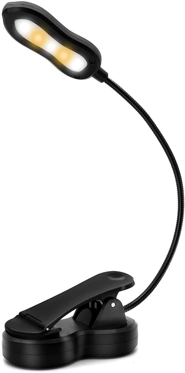 Rechargeable LED Book Light, 2 Warm & 3 White SMD LED, Color and Brightness Adjustable, Clip on Reading Lights for Reading in Bed at Night, 9 Brightness Levels, Lightweight, Ideal for Bookworms, Pian