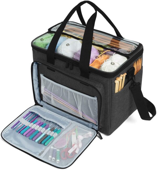 Teamoy Knitting Bag, Yarn Tote Organizer with Inner Divider (Sewn to Bottom) for Crochet Hooks, Knitting Needles(Up to 14?), Project and Supplies, Black -No Accessories Included