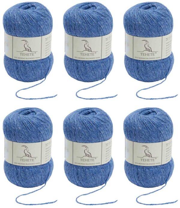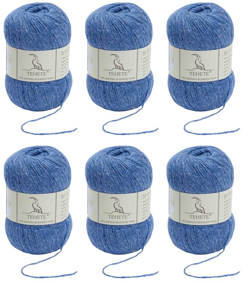 TEHETE Merino Wool 6X50g 3-Ply Soft Hand Knitting Crochet Yarn for Sweaters, Scarf, Leggings, Gloves, Socks (6 Balls, Star Blue)