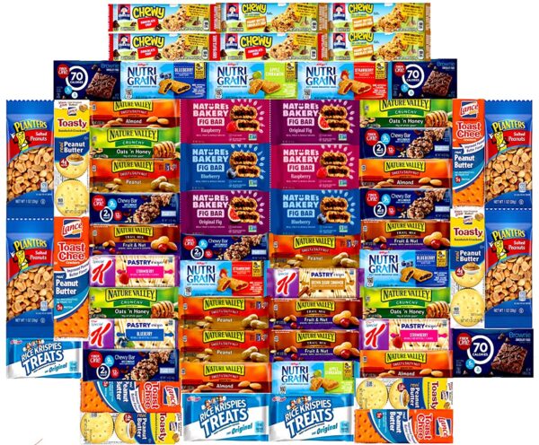 Ultimate Healthy Office Bars (60 count), Snacks & Nuts Bulk Variety Pack – Travel Snack Box – Military Care Package, Variety Gift Pack for Office, Military, Travel, Students, Final Exams, Outdoor