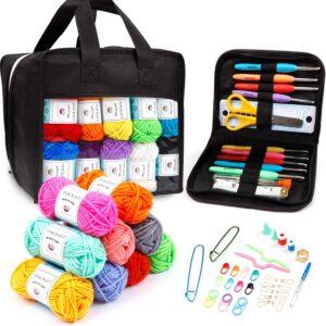 40 Acrylic Yarn Skeins with Crochet Hook Kit, 1600 Yards Crochet Yarn with Crochet Accessories Kit Including Ergonomic Hooks, Scissors, Knitting Needles, Stitch Markers & More